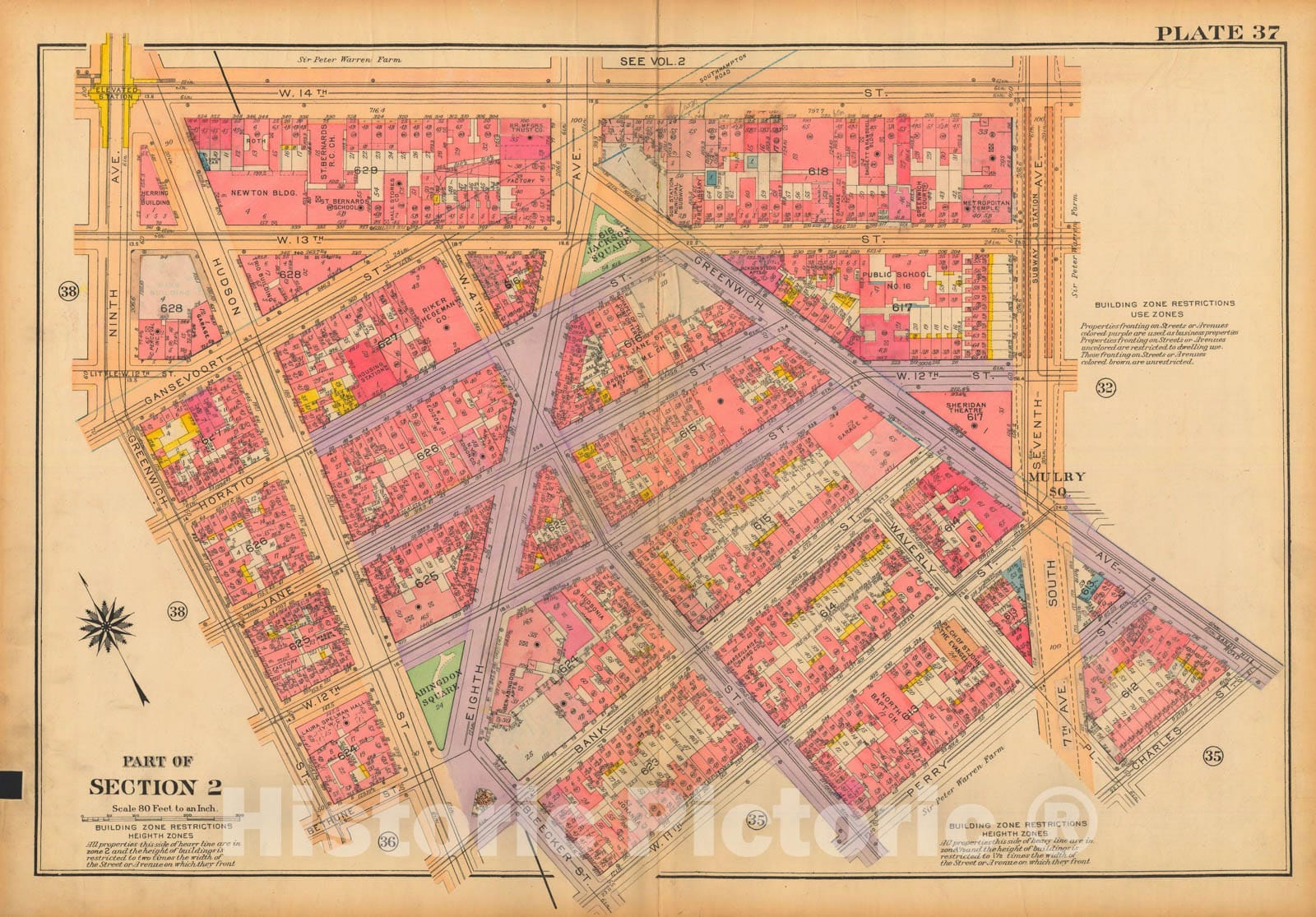 Historic Map : Atlas City of New York, Borough of Manhattan, Volume One, Battery to 14th Street, Manhattan 1922 Plate 037 , Vintage Wall Art