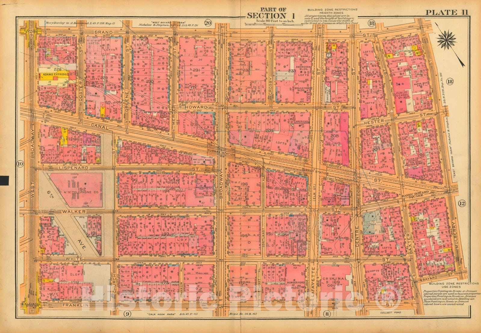 Historic Map : Atlas City of New York, Borough of Manhattan, Volume One, Battery to 14th Street, Manhattan 1922 Plate 011 , Vintage Wall Art