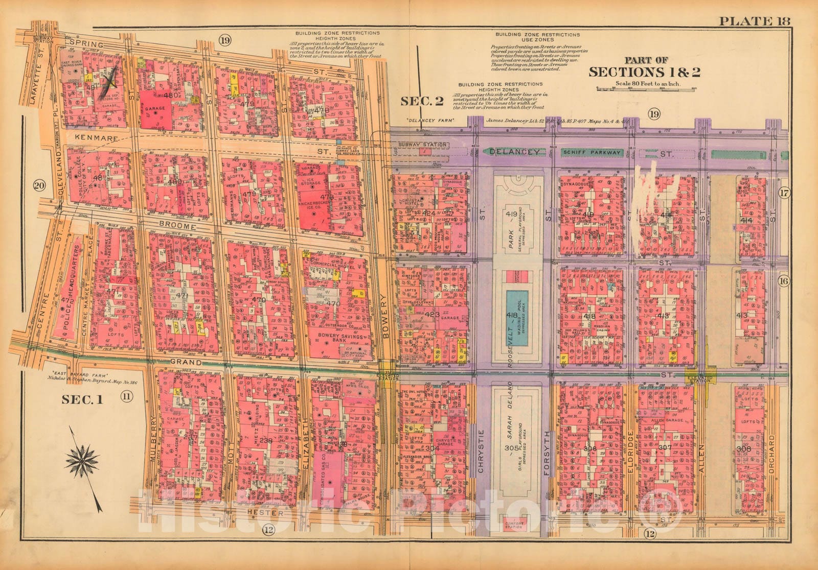 • .Historic Map : Atlas City of New York, Borough of Manhattan, Volume One, Battery to 14th Street, Manhattan 1922 Plate 018 , Vintage Wall Art