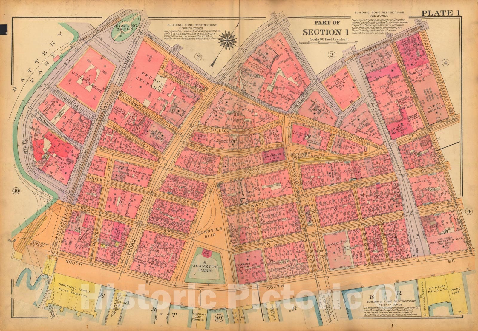 Historic Map : Atlas City of New York, Borough of Manhattan, Volume One, Battery to 14th Street, Manhattan 1922 Plate 001 , Vintage Wall Art