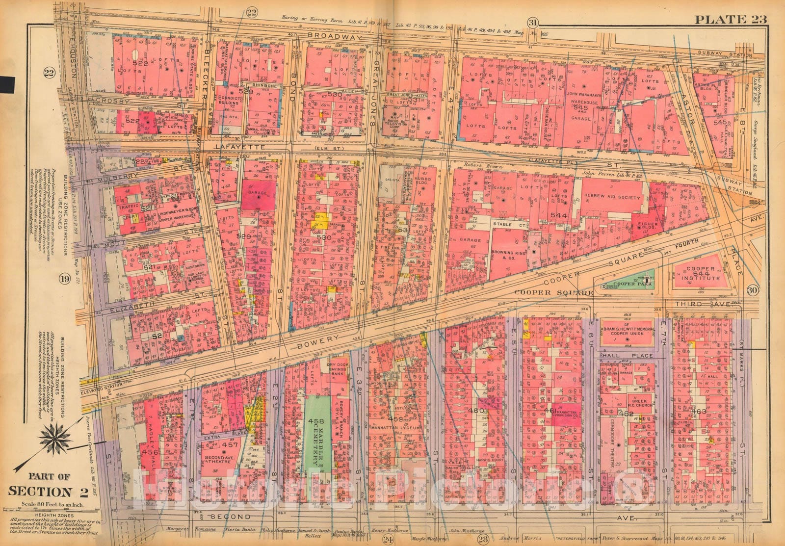 Historic Map : Atlas City of New York, Borough of Manhattan, Volume One, Battery to 14th Street, Manhattan 1922 Plate 023 , Vintage Wall Art