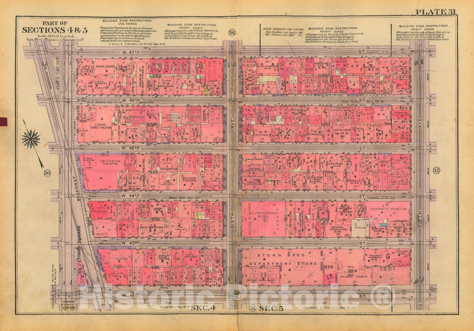 • .Historic Map : Atlas City of New York, Borough of Manhattan, Volume Two, 14th Street to 59th Street, Manhattan 1928 Plate 031 , Vintage Wall Art