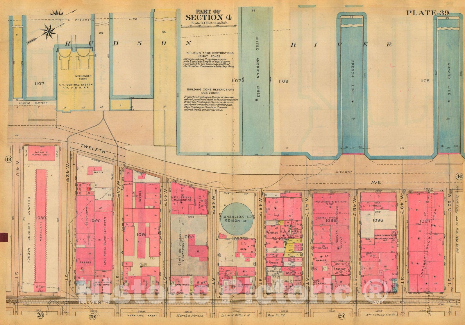• Historic Map : Atlas City of New York, Borough of Manhattan, Volume Two, 14th Street to 59th Street, Manhattan 1928 Plate 039 , Vintage Wall Art