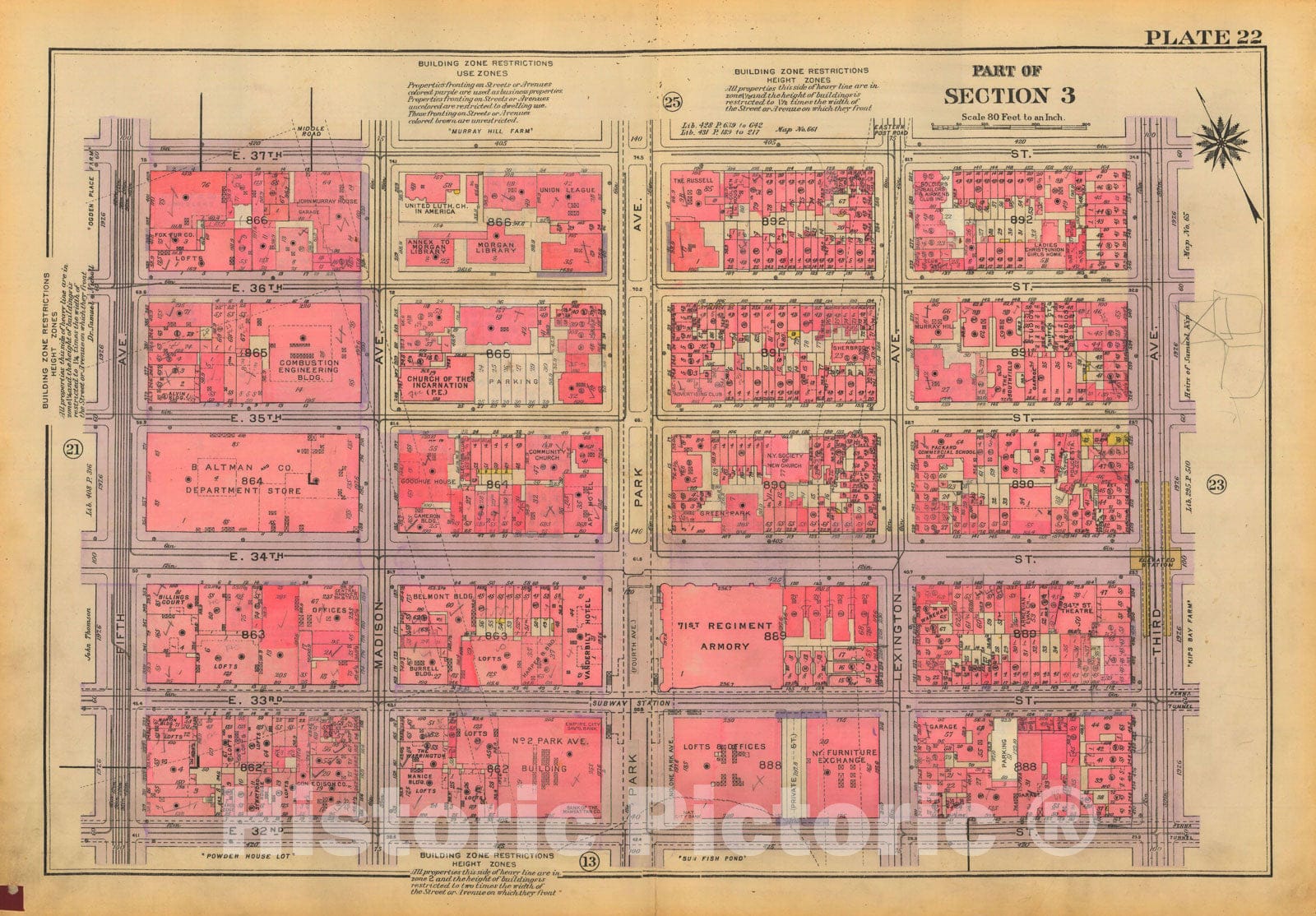 Historic Map : Atlas City of New York, Borough of Manhattan, Volume Two, 14th Street to 59th Street, Manhattan 1928 Plate 022 , Vintage Wall Art