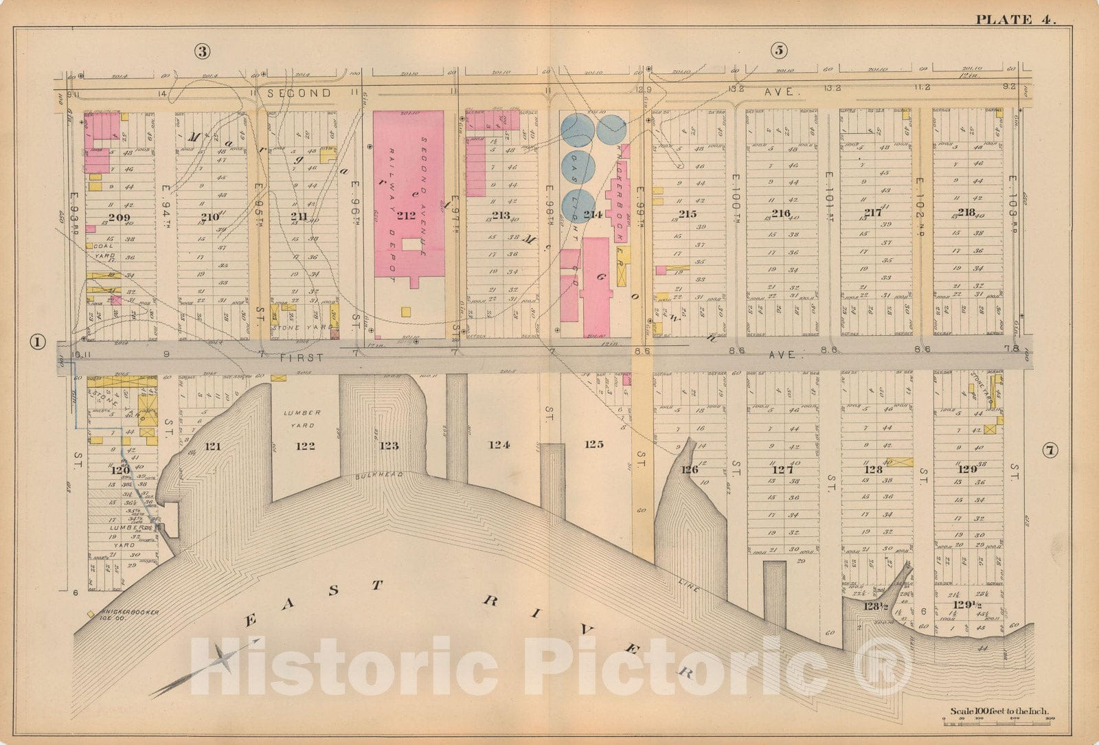 • Historic Map : Atlas City of New York, Vol 2 ... 12th Ward, 2nd Ed., Manhattan 1884 Plate 004 , Vintage Wall Art