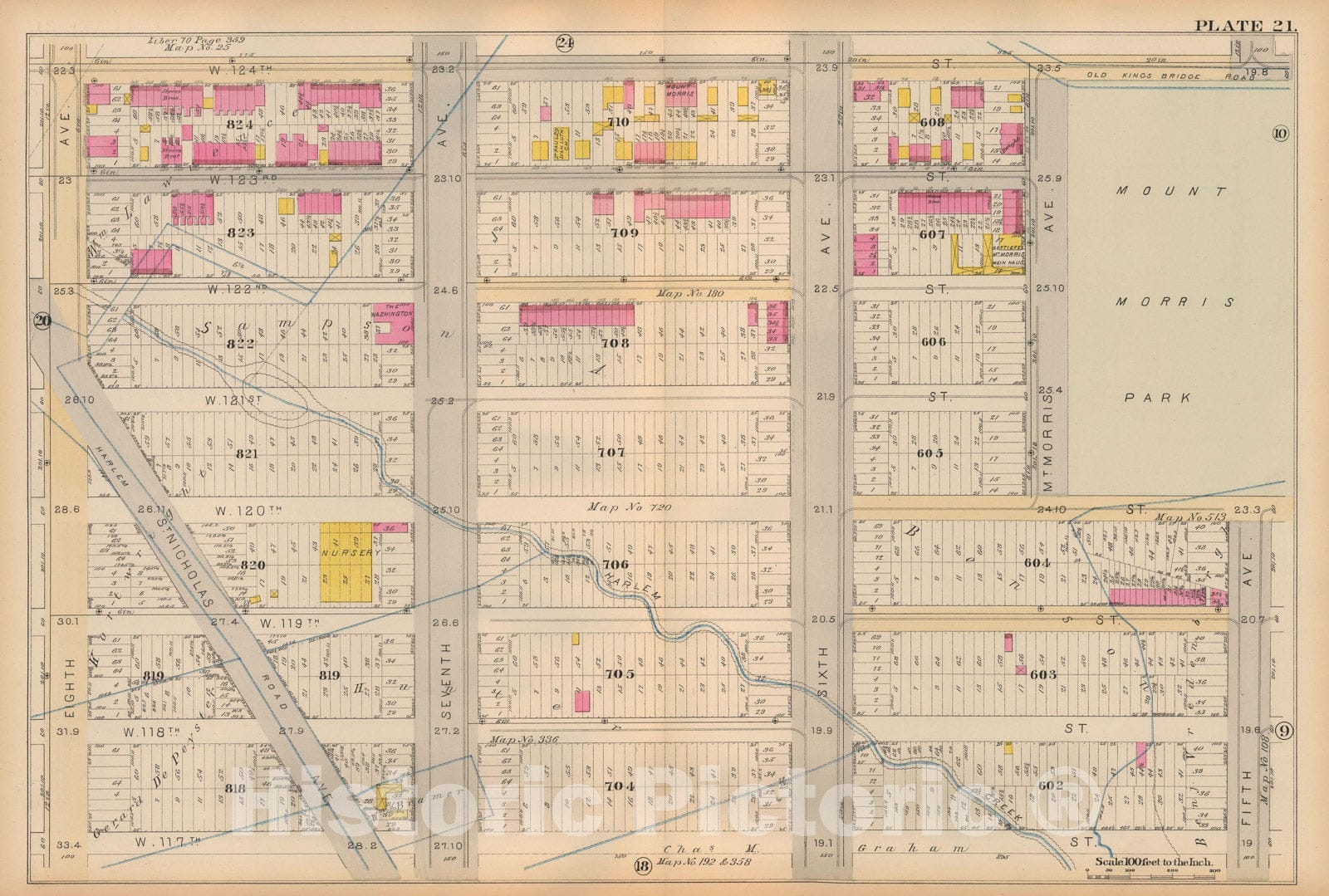 Historic Map : Atlas City of New York, Vol 2 ... 12th Ward, 2nd Ed., Manhattan 1884 Plate 021 , Vintage Wall Art