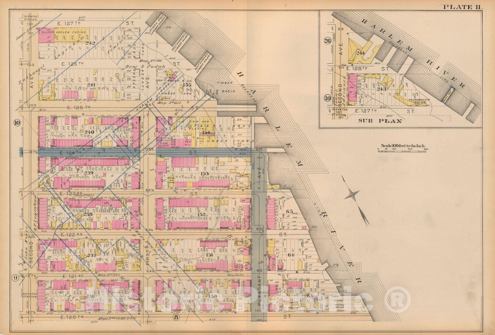 Historic Map : Atlas City of New York, Vol 2 ... 12th Ward, 2nd Ed., Manhattan 1884 Plate 011 , Vintage Wall Art