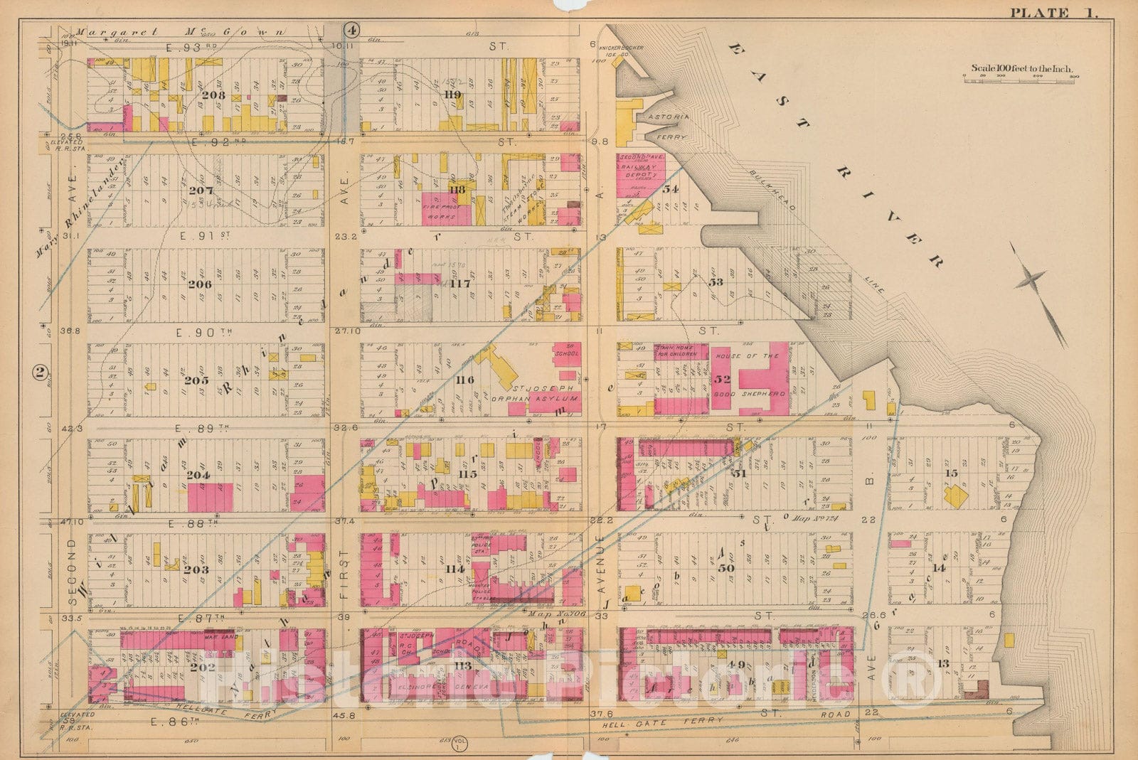 • .Historic Map : Atlas City of New York, Vol 2 ... 12th Ward, 2nd Ed., Manhattan 1884 Plate 001 , Vintage Wall Art