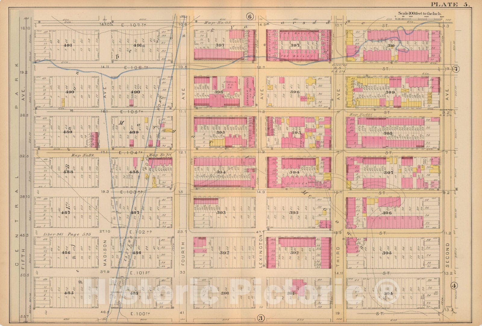 • .Historic Map : Atlas City of New York, Vol 2 ... 12th Ward, 2nd Ed., Manhattan 1884 Plate 005 , Vintage Wall Art