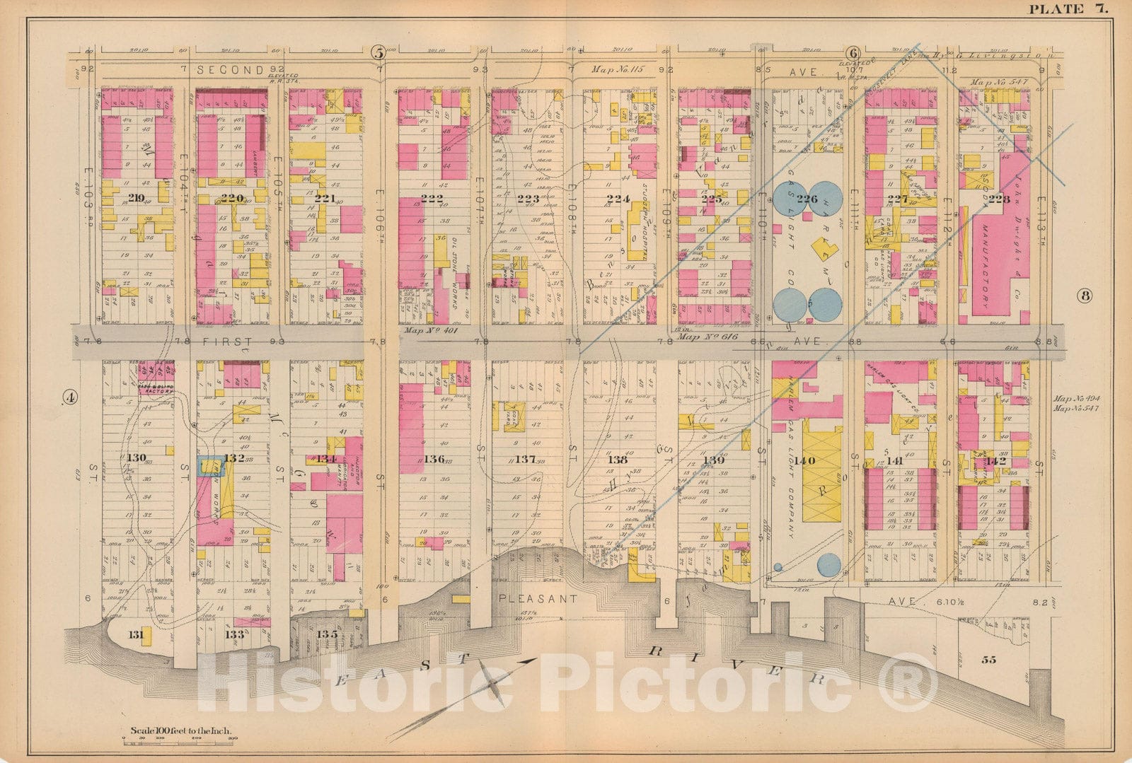 Historic Map : Atlas City of New York, Vol 2 ... 12th Ward, 2nd Ed., Manhattan 1884 Plate 007 , Vintage Wall Art