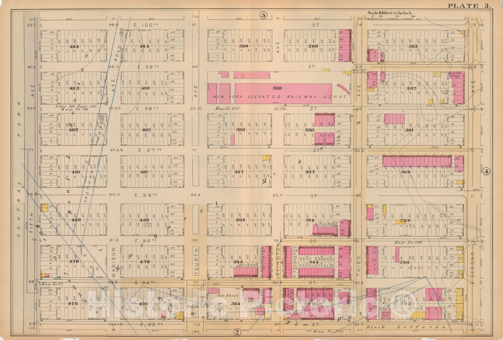 Historic Map : Atlas City of New York, Vol 2 ... 12th Ward, 2nd Ed., Manhattan 1884 Plate 003 , Vintage Wall Art
