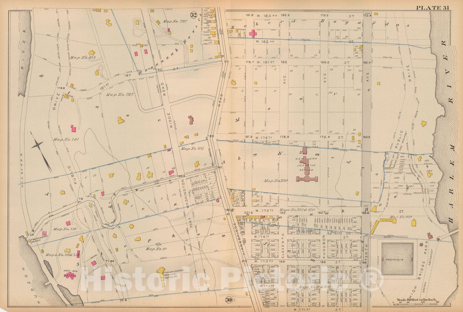 Historic Map : Atlas City of New York, Vol 2 ... 12th Ward, 2nd Ed., Manhattan 1884 Plate 031 , Vintage Wall Art