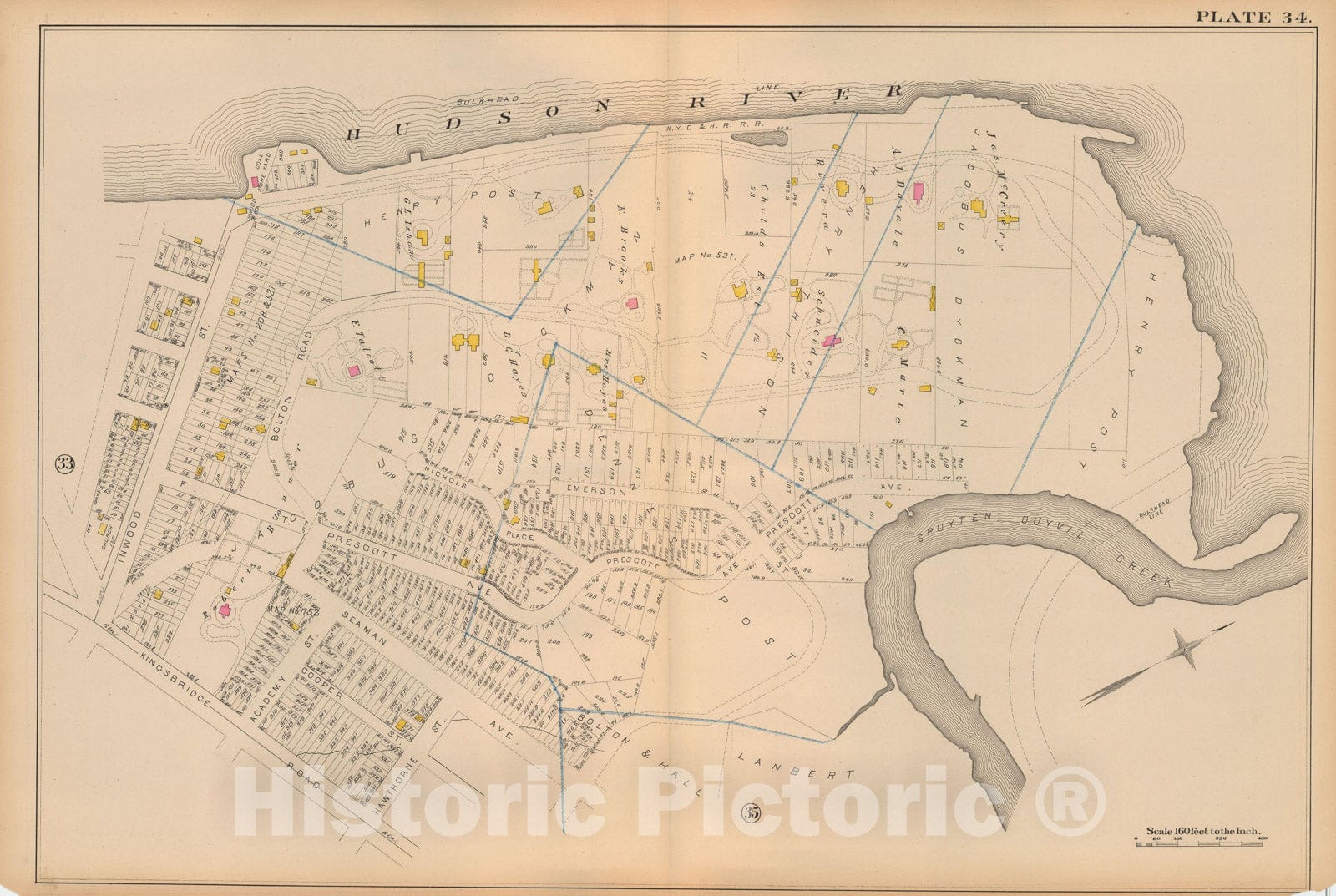 Historic Map : Atlas City of New York, Vol 2 ... 12th Ward, 2nd Ed., Manhattan 1884 Plate 034 , Vintage Wall Art