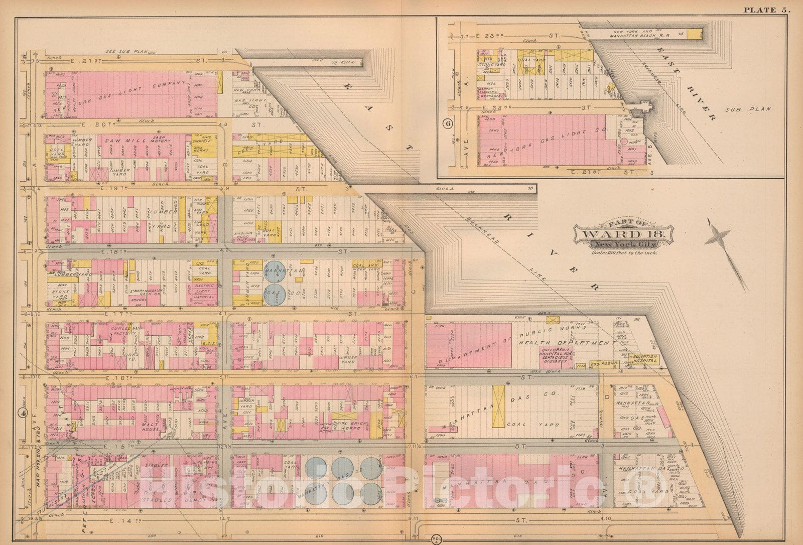 Historic Map : Atlas City of New York, Vol. 3; 16, Manhattan 1883 Plate 005 , Vintage Wall Art
