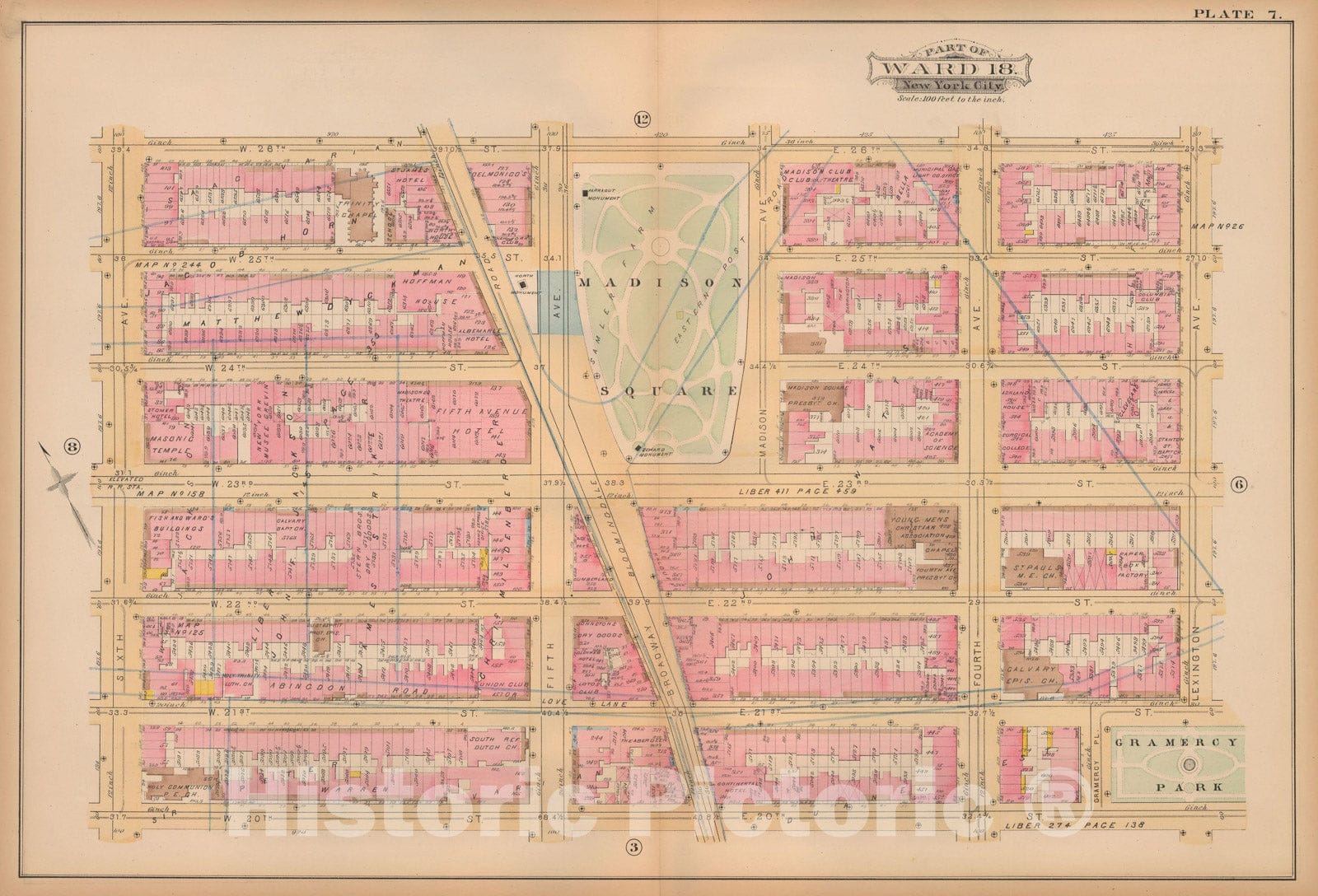 Historic Map : Atlas City of New York, Vol. 3; 16, Manhattan 1883 Plate 007 , Vintage Wall Art