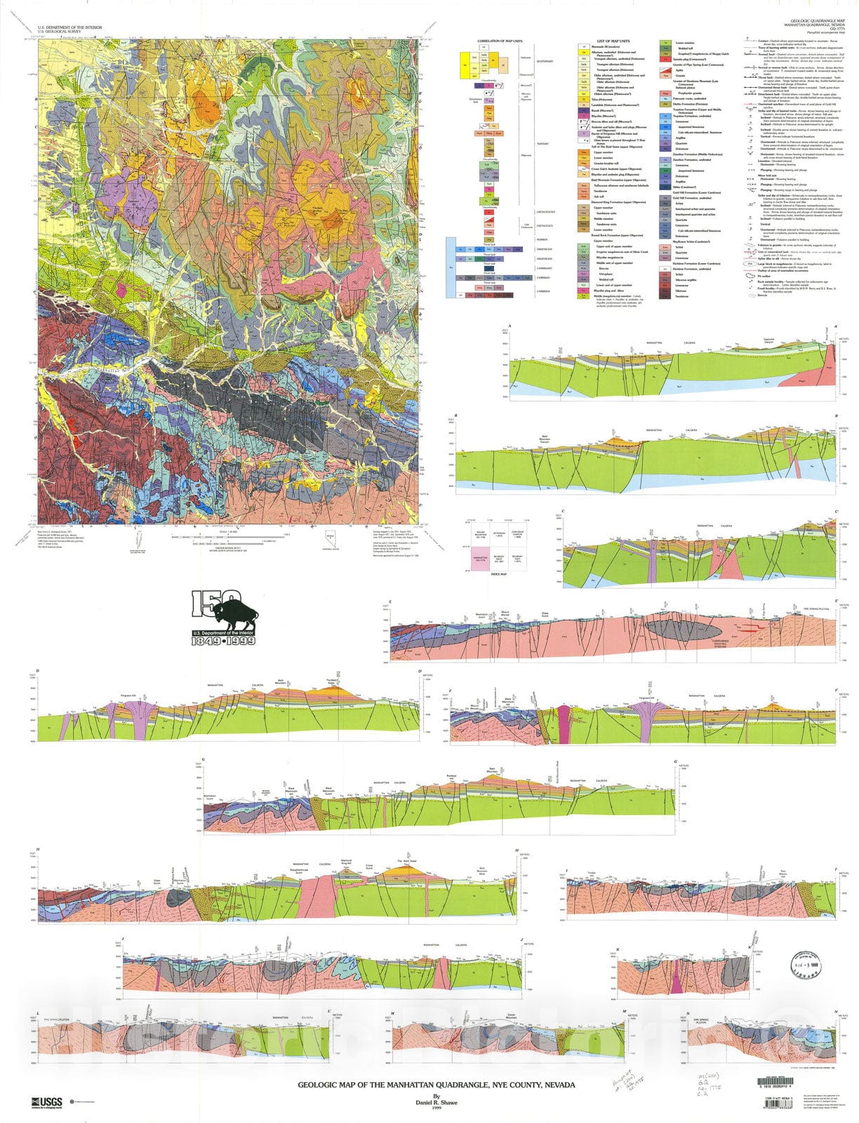 Map : Geologic map of the Manhattan quadrangle, Nye County, Nevada, 1999 Cartography Wall Art :
