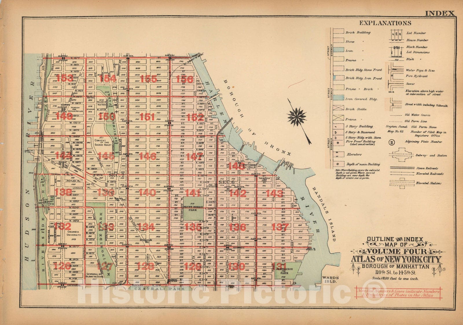 Historic Map : Land Book of the Borough of Manhattan, City of NY, Manhattan 1925 Index Plate , v2, Vintage Wall Art