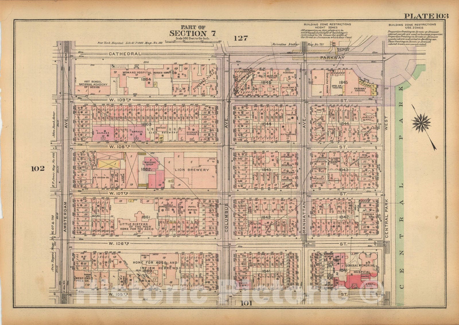 Historic Map : Land Book of the Borough of Manhattan, City of NY, Manhattan 1925 Plate 103 , Vintage Wall Art