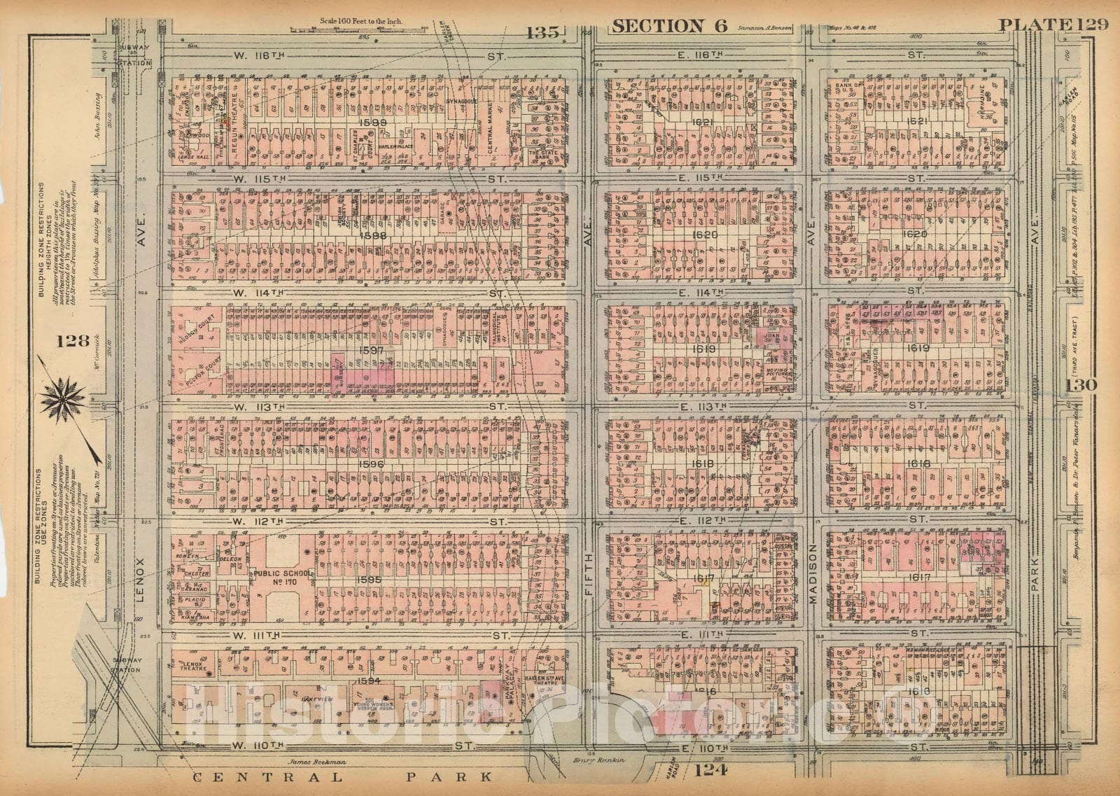 Historic Map : Land Book of the Borough of Manhattan, City of NY, Manhattan 1925 Plate 129 , Vintage Wall Art