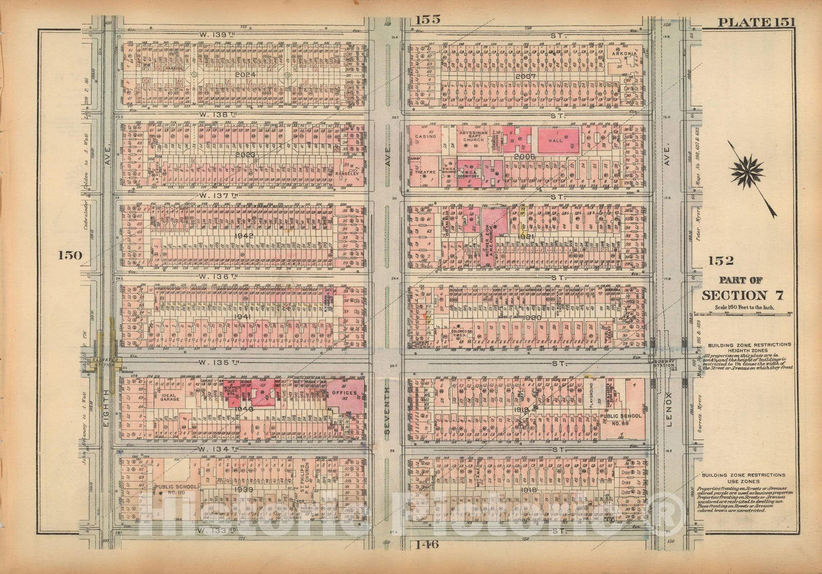Historic Map : Land Book of the Borough of Manhattan, City of NY, Manhattan 1925 Plate 151 , Vintage Wall Art