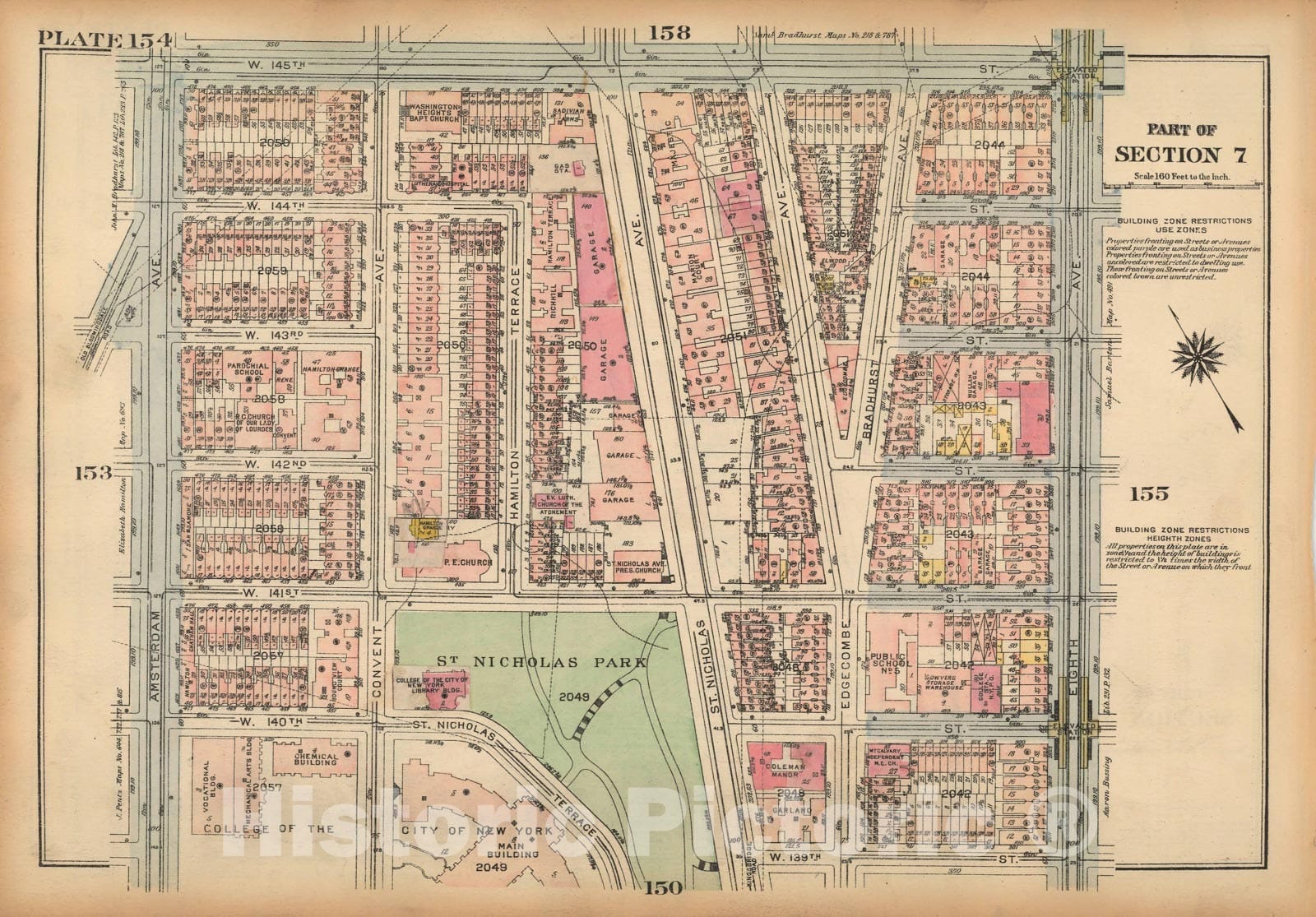 Historic Map : Land Book of the Borough of Manhattan, City of NY, Manhattan 1925 Plate 154 , Vintage Wall Art