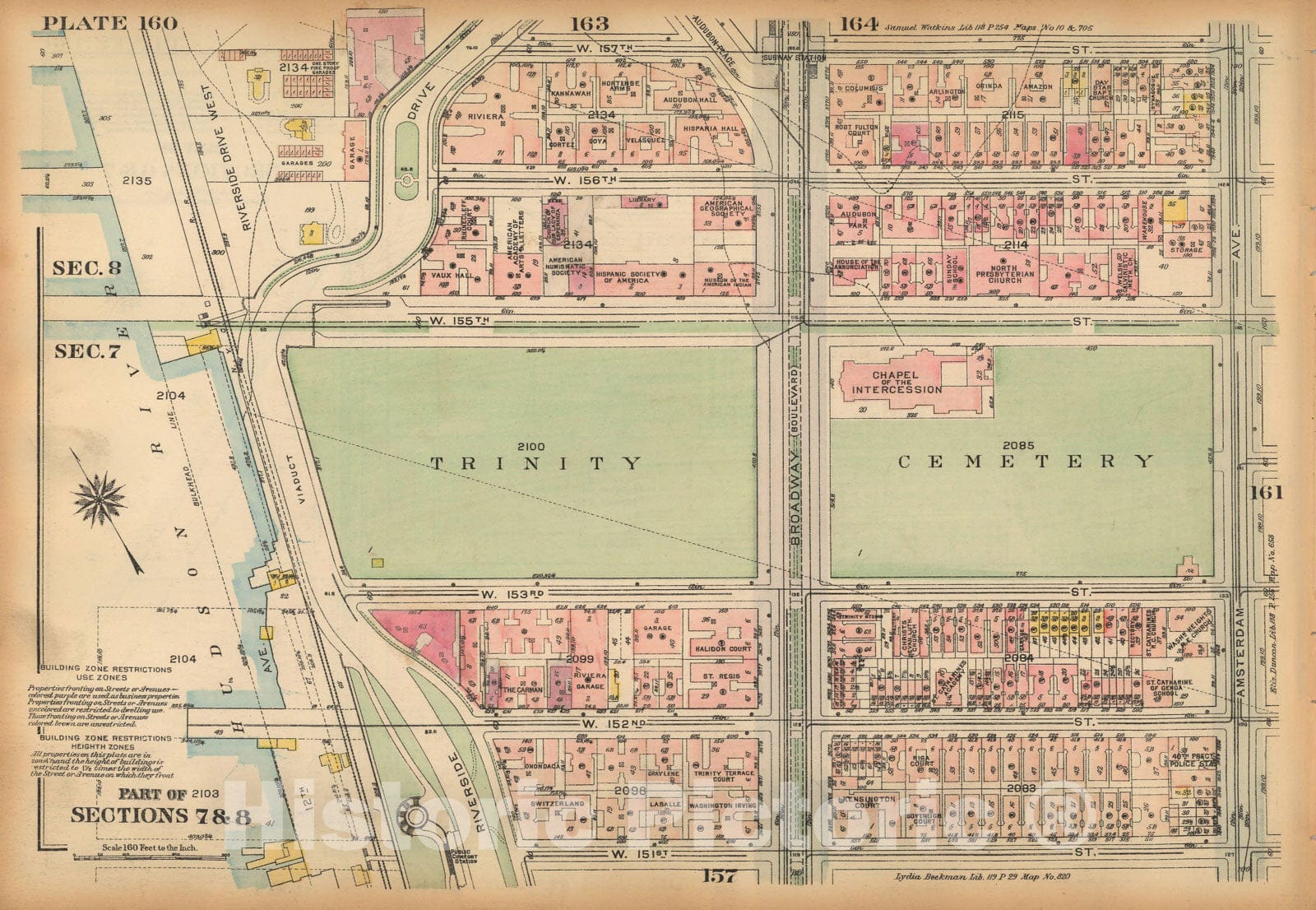 Historic Map : Land Book of the Borough of Manhattan, City of NY, Manhattan 1925 Plate 160 , Vintage Wall Art
