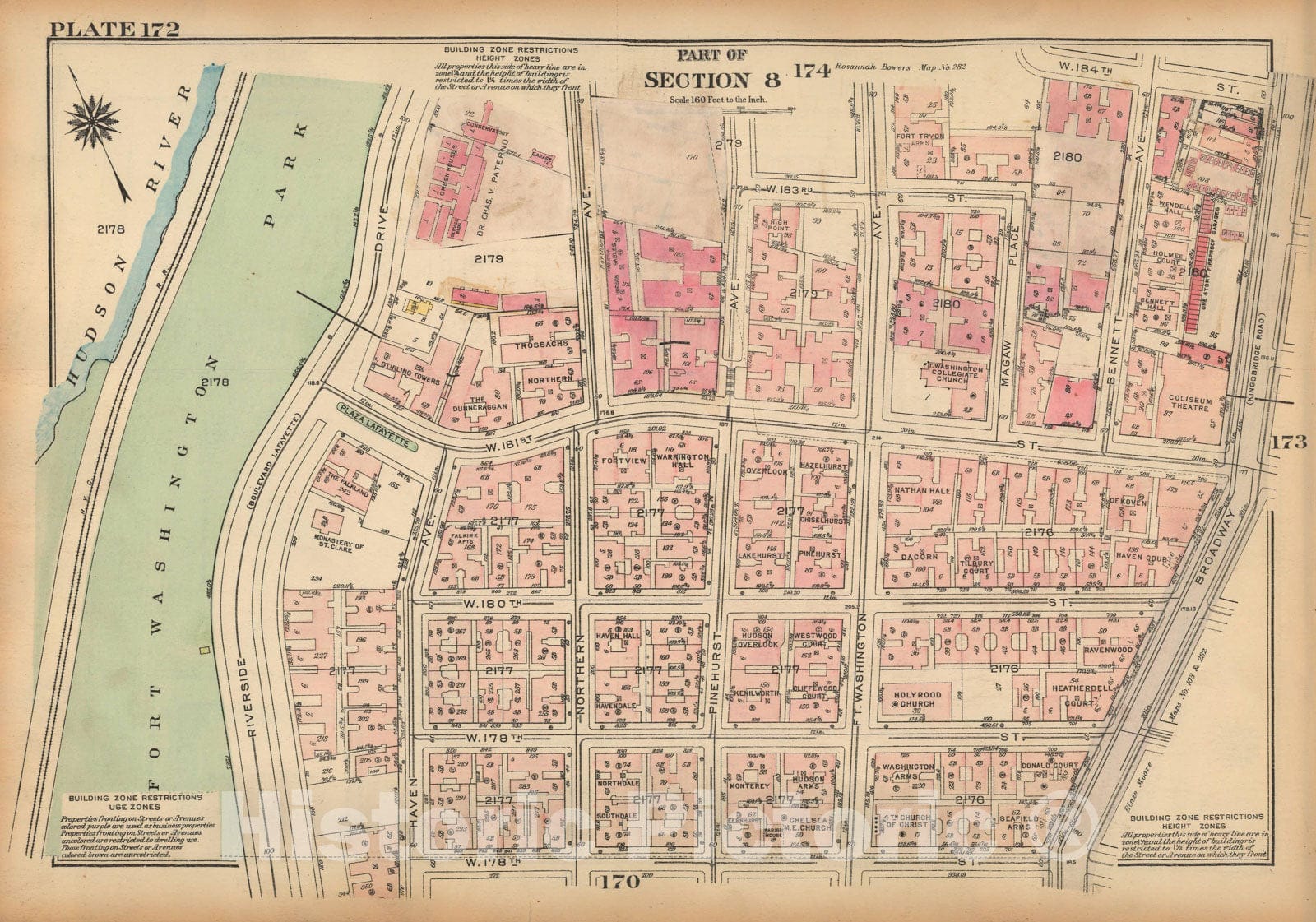 Historic Map : Land Book of the Borough of Manhattan, City of NY, Manhattan 1925 Plate 172 , Vintage Wall Art