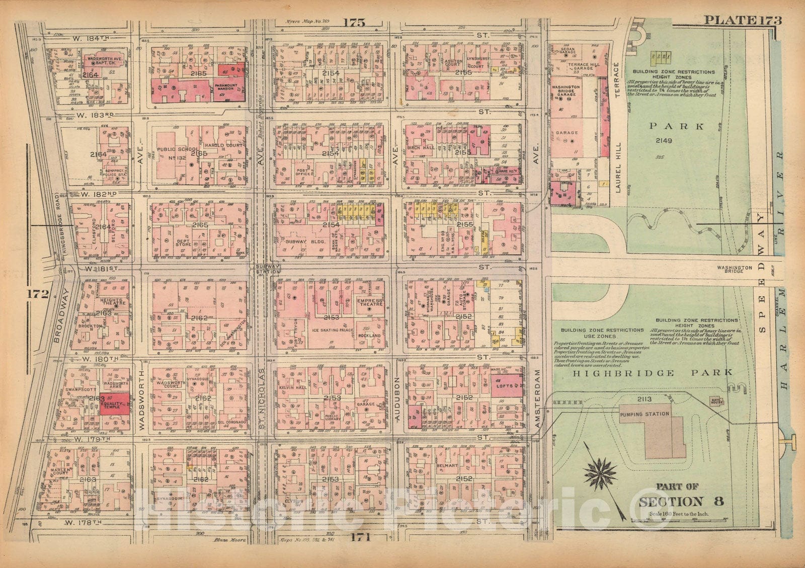 Historic Map : Land Book of the Borough of Manhattan, City of NY, Manhattan 1925 Plate 173 , Vintage Wall Art