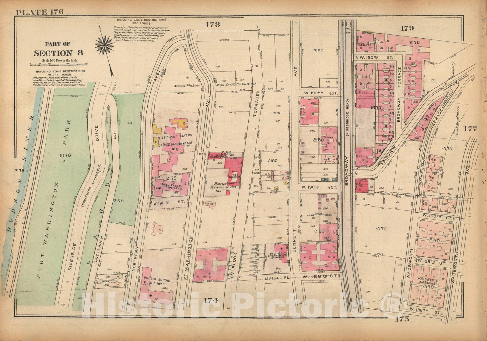 Historic Map : Land Book of the Borough of Manhattan, City of NY, Manhattan 1925 Plate 176 , Vintage Wall Art