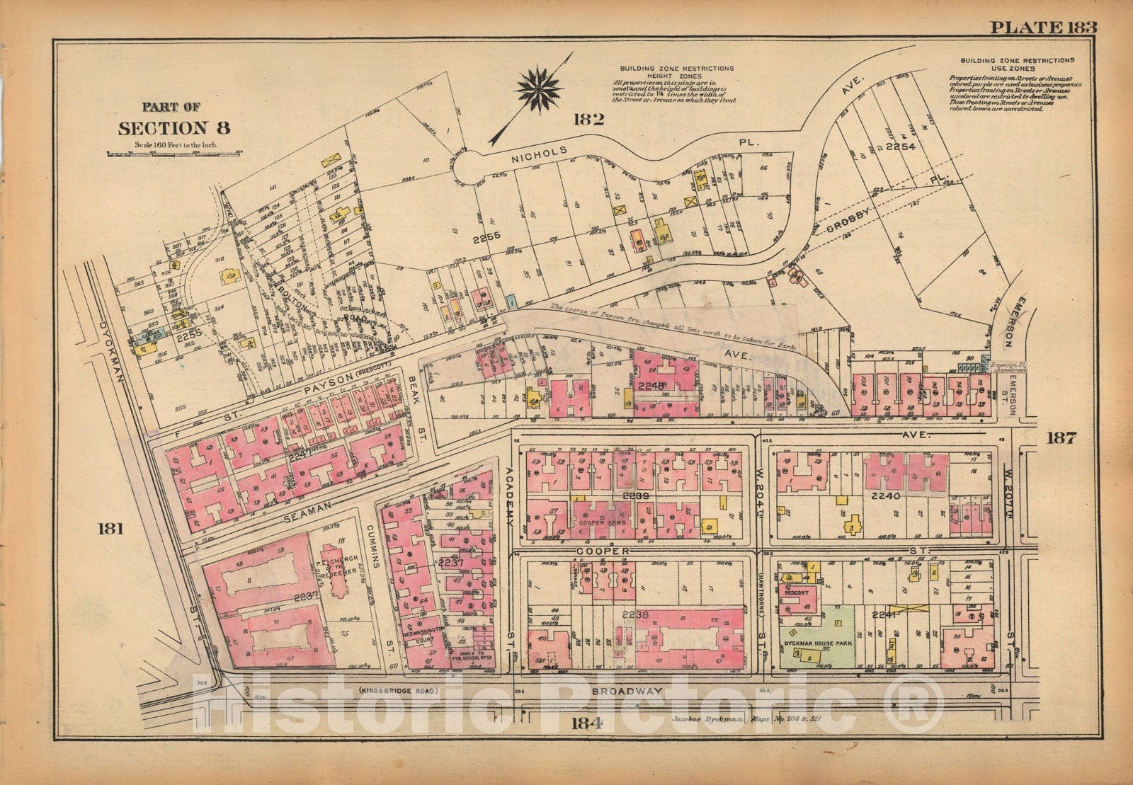 Historic Map : Land Book of the Borough of Manhattan, City of NY, Manhattan 1925 Plate 183 , Vintage Wall Art
