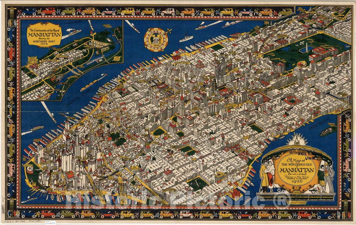 Map : Manhattan 1926, A map of the wondrous isle of Manhattan , Antique Vintage Reproduction