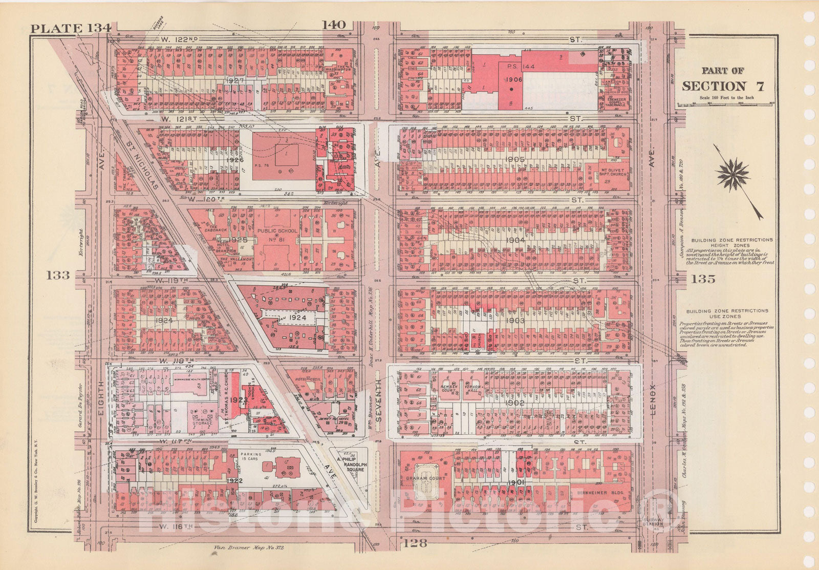 Historic Map : Manhattan Land Book 1955 - Updated Through Nov 7th, New York City 1975 Plate 134 , Vintage Wall Art