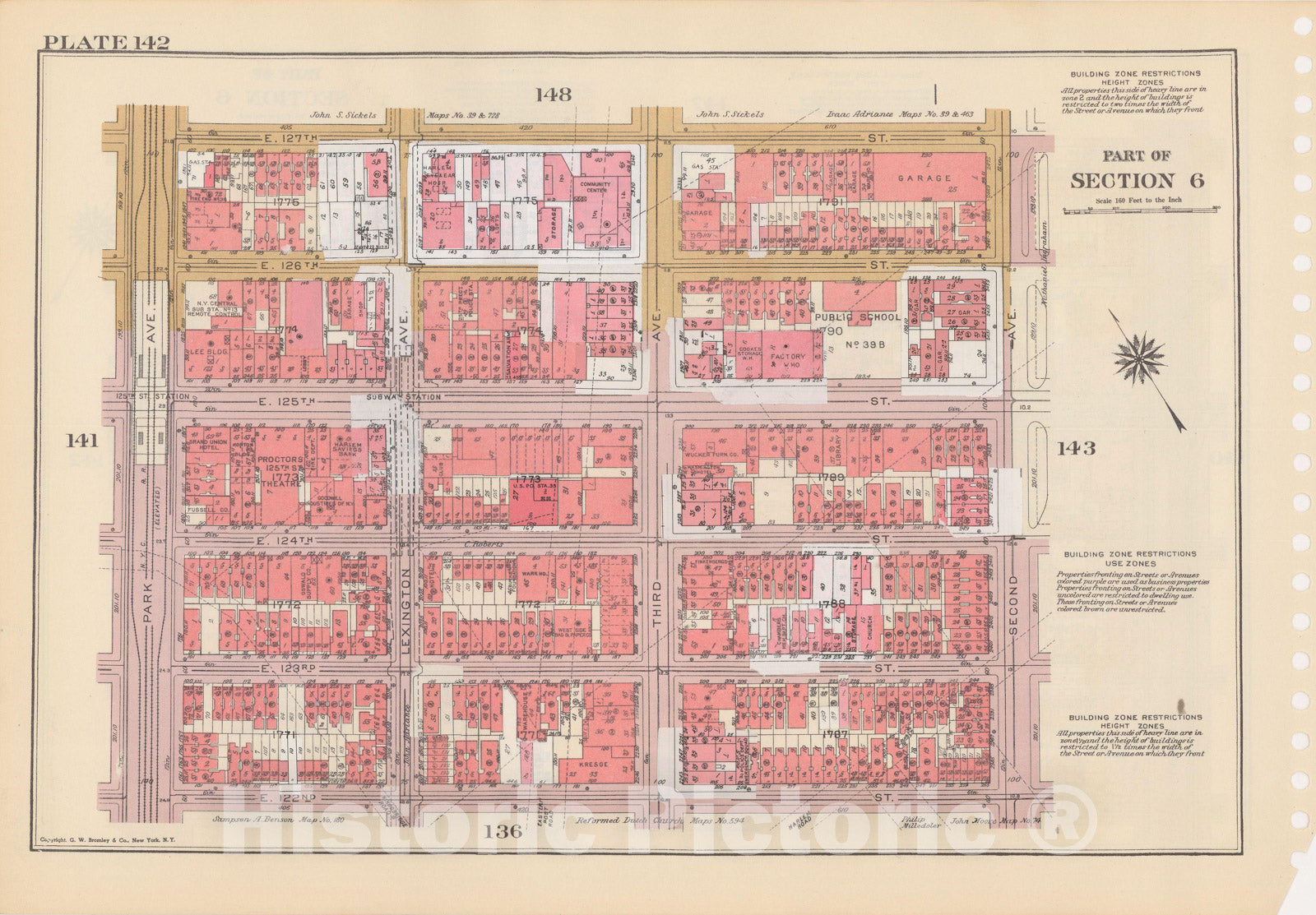 Historic Map : Manhattan Land Book 1955 - Updated Through Nov 7th, New York City 1975 Plate 142 , Vintage Wall Art