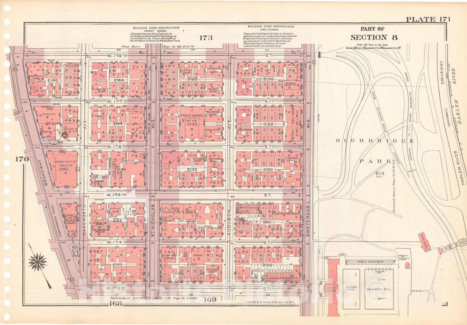 • .Historic Map : Manhattan Land Book 1955 - Updated Through Nov 7th, New York City 1975 Plate 171 , Vintage Wall Art