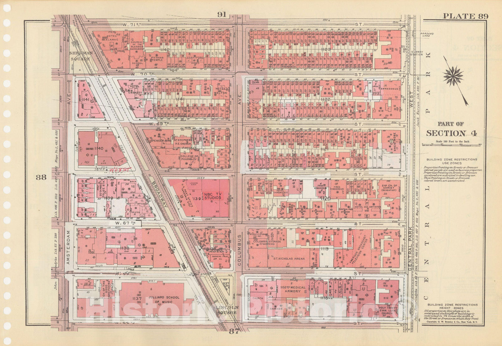 Historic Map : Manhattan Land Book 1955 - Updated Through Nov 7th, New York City 1975 Plate 089 , Vintage Wall Art