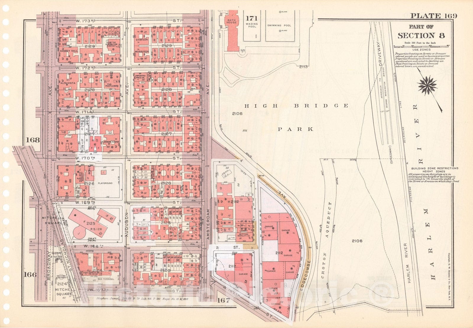 Historic Map : Manhattan Land Book 1955 - Updated Through Nov 7th, New York City 1975 Plate 169 , Vintage Wall Art