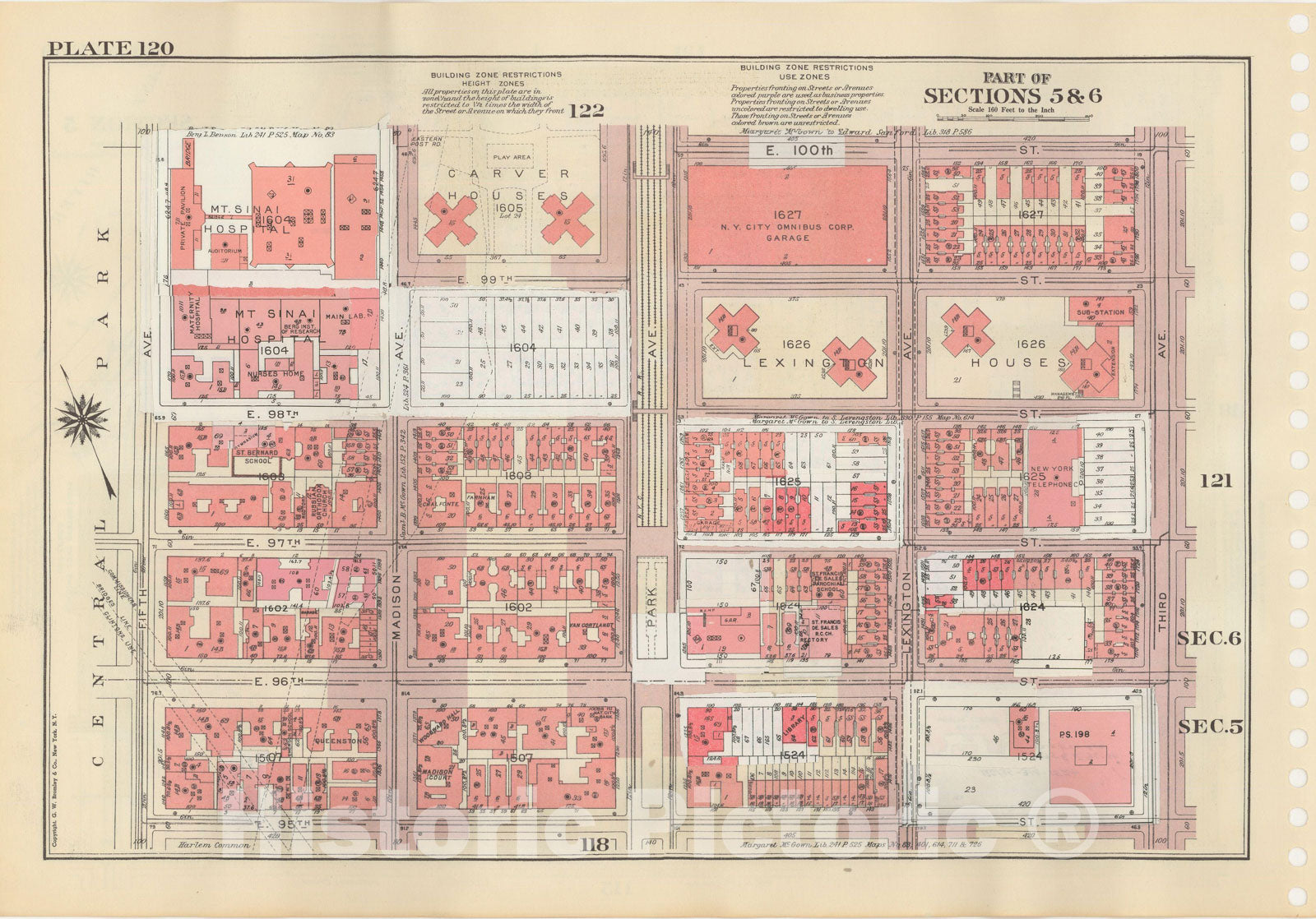 • .Historic Map : Manhattan Land Book 1955 - Updated Through Nov 7th, New York City 1975 Plate 120 , Vintage Wall Art