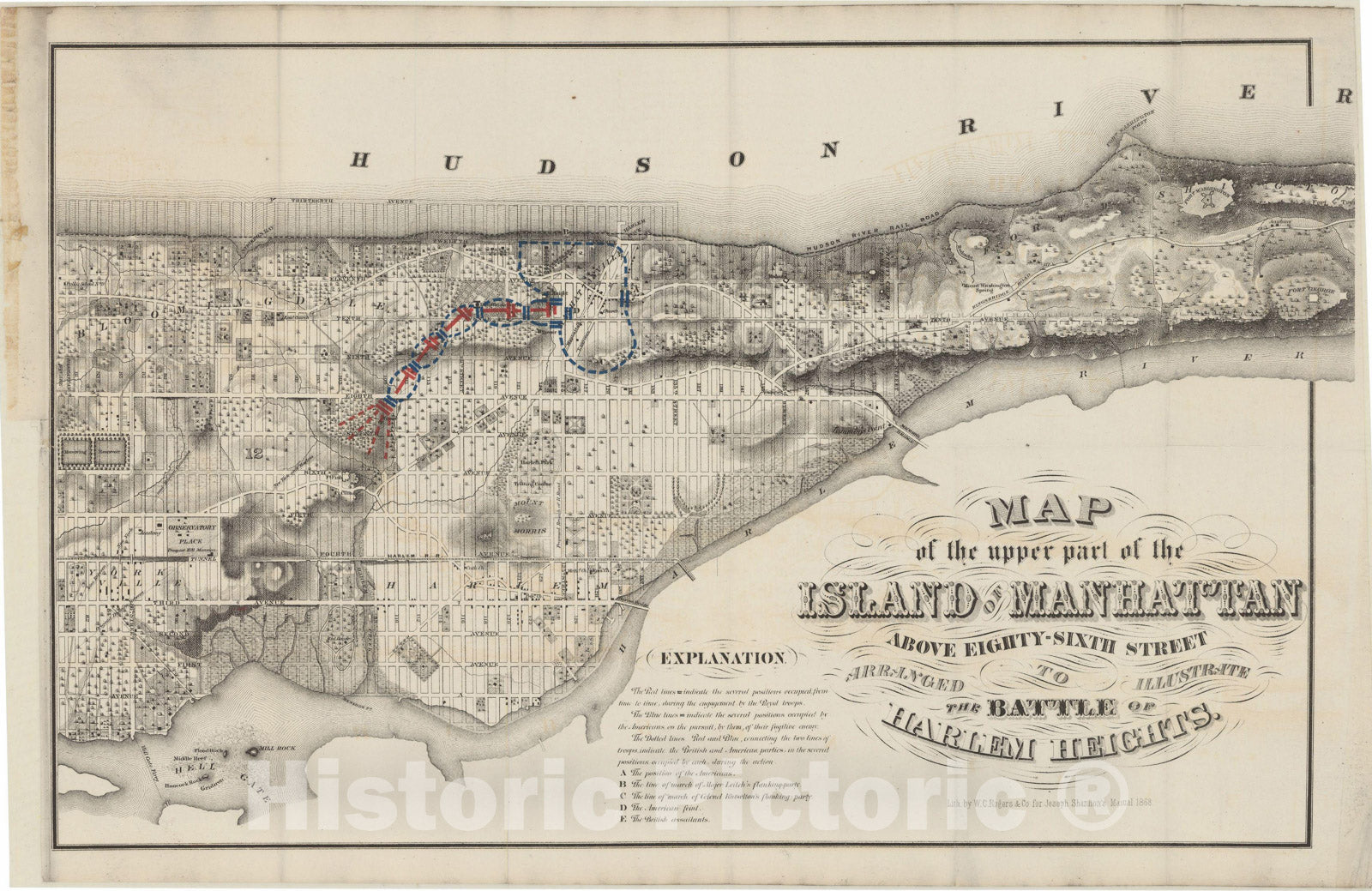 • .Historic Map : Manhattan & New York City 1868 , v3, Vintage Wall Art