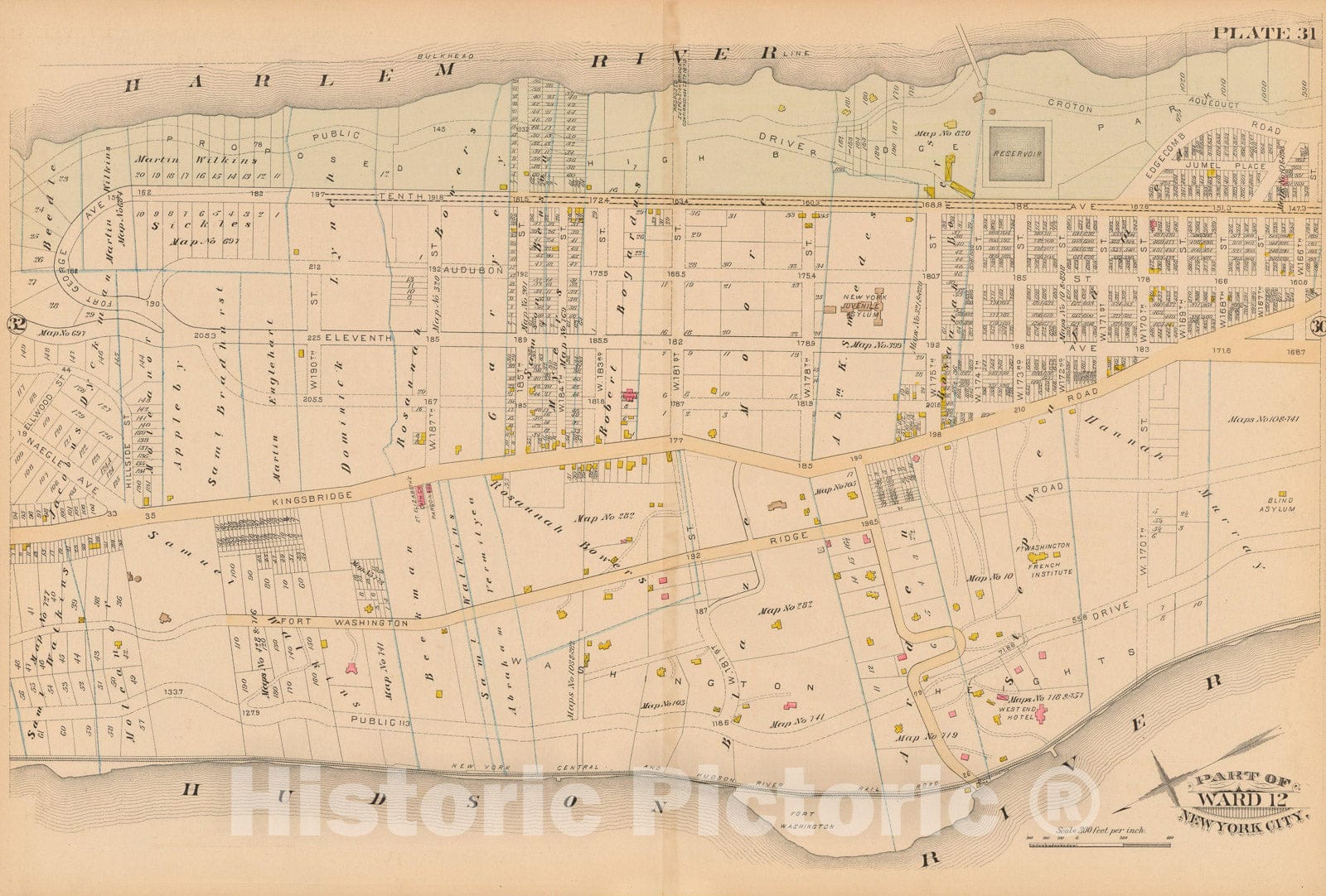 Historic Map : Manhattan & New York City 1885 Plate 031 , Robinson's Atlas City of New York , Vintage Wall Art