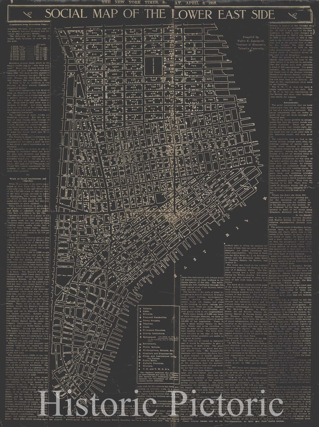 Historic 1910 Map - Social Map Of The Lower East Side.Of New York City And State - Manhattan - Vintage Wall Art