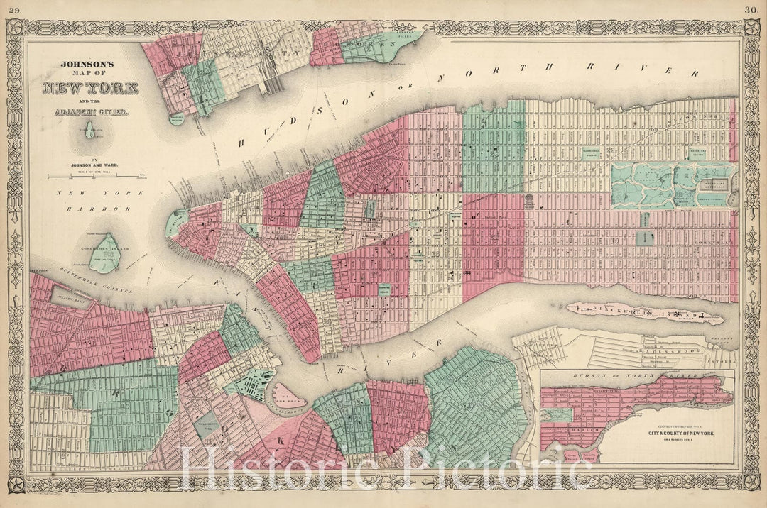 Historic 1860 Map - Johnson'S Map Of Nyc. - -Maps Of New York City And State - Manhattan - Vintage Wall Art