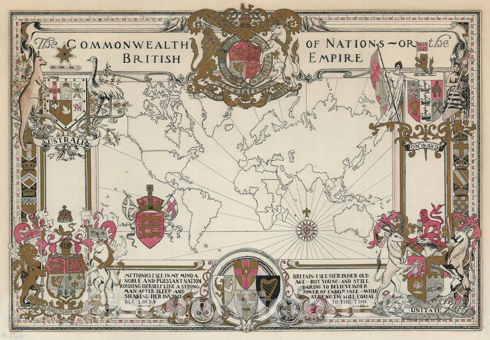 Historic Map : The British Empire - original manuscript, Webb, 1937, Vintage Wall Art