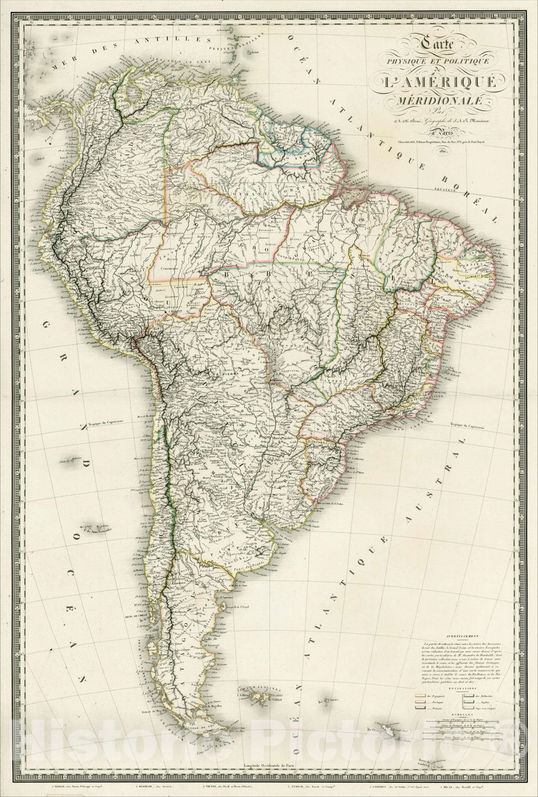 Historic Map : Carte de Physique et Politique de L'Amerique Meridionale, 1821 (with contemporary manuscript annotations), 1821, , Vintage Wall Art
