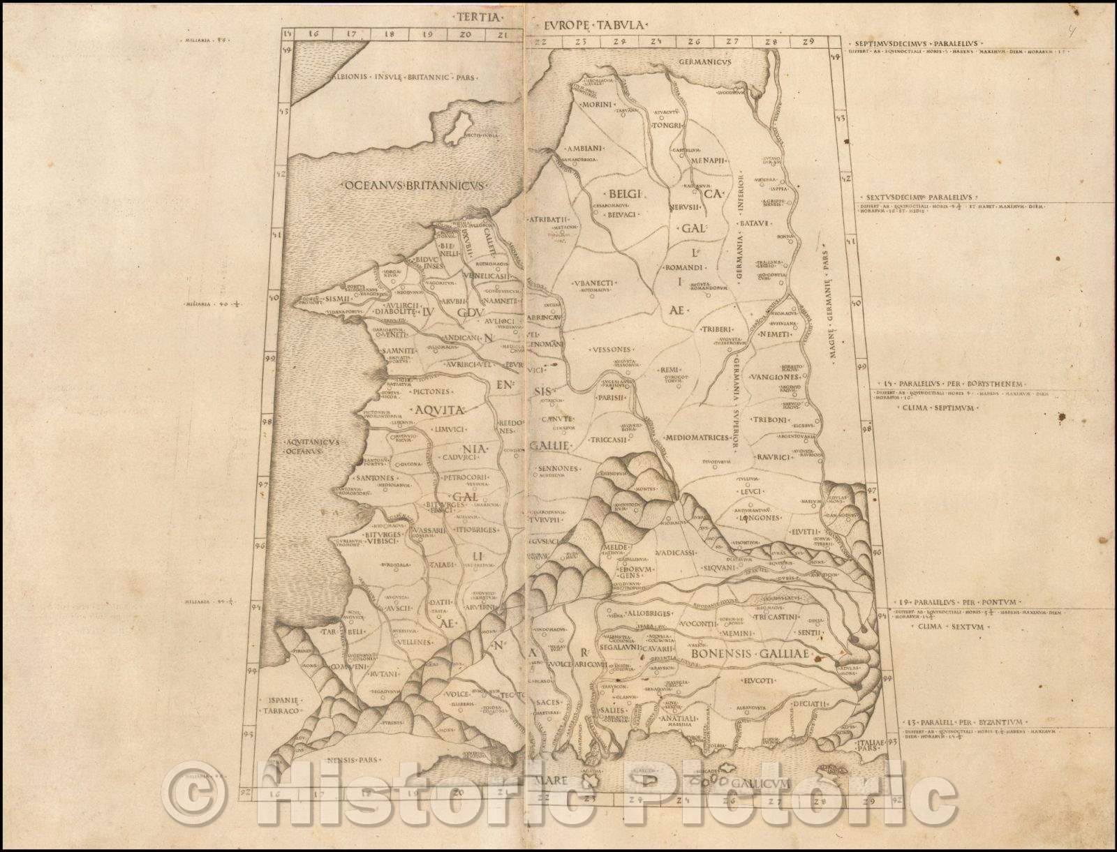 Historic Map - (France & Belgium) Tertia Europe Tabula (with manuscript addition!), 1478, Claudius Ptolemy - Vintage Wall Art