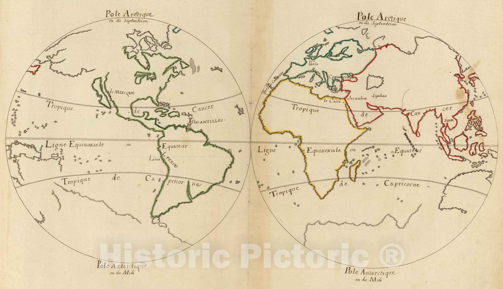 • .Historic Map : Manuscript Map - 1693 Planisfere, Cours du Soleil, Points cardinaus. - Vintage Wall Art