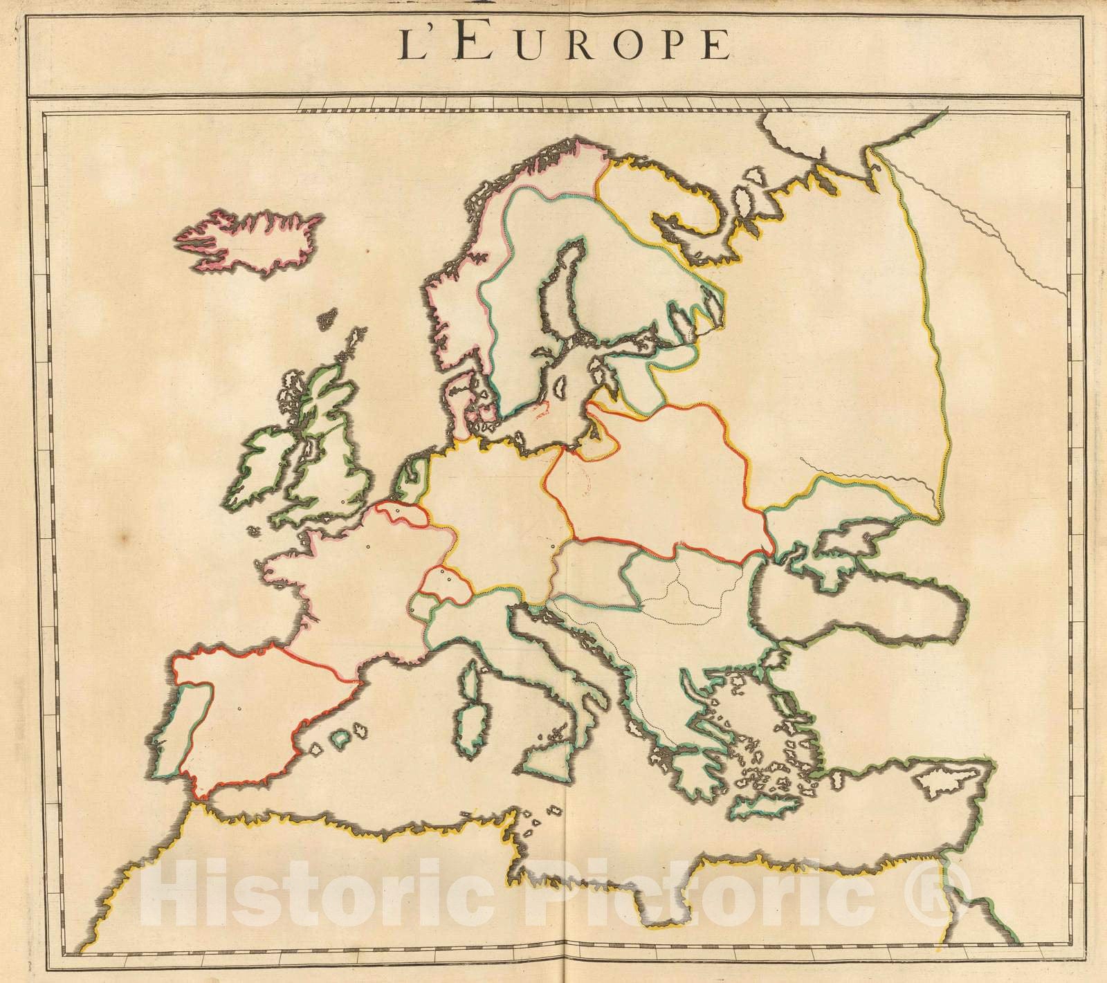 Historic Map : Manuscript Map - 1695 L'Europe (nom, Maison, Religion, etc. des souverains - Outline) - Vintage Wall Art