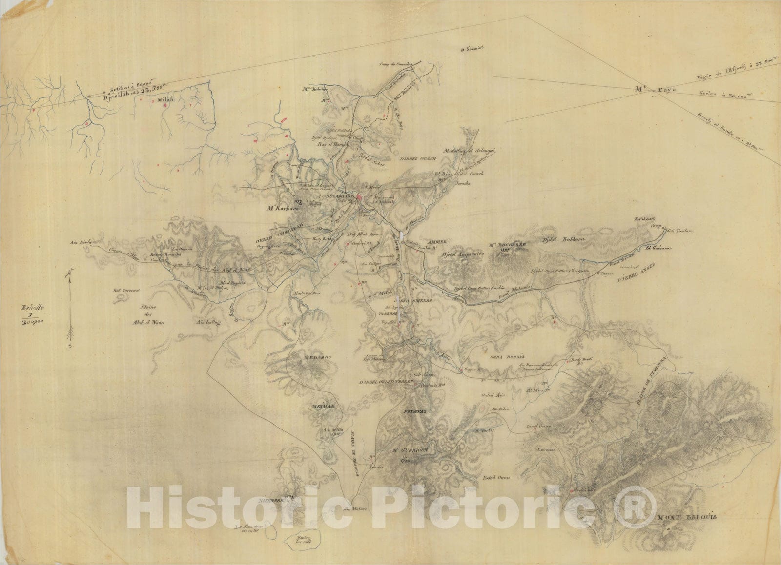Historic Map : (Military Manuscript Map - Algeria) Constantine & Environs, c1837, , Vintage Wall Art