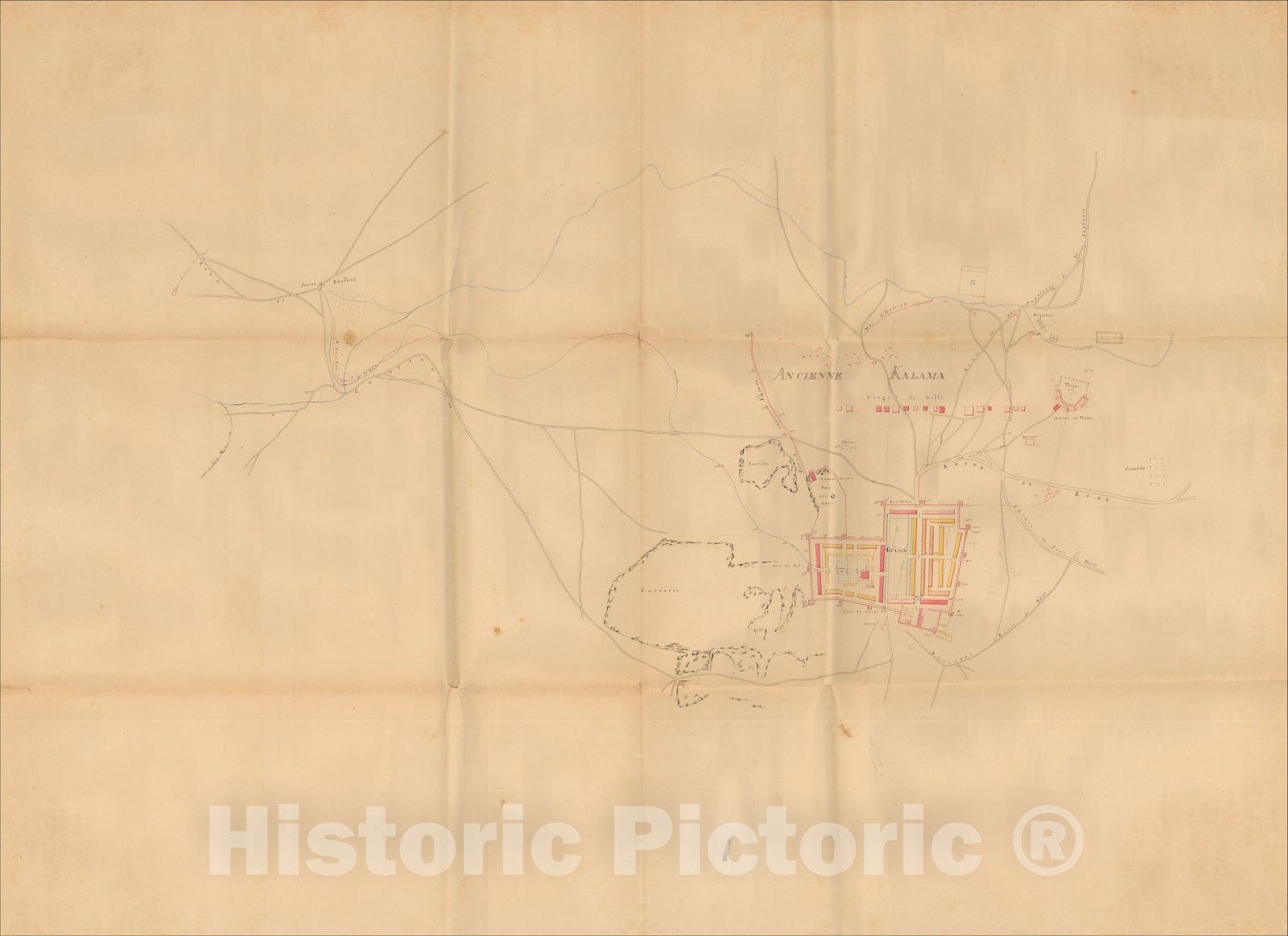 Historic Map : (Military Manuscript Map - Algeria) Plan of the city of Guelma, c1836, , Vintage Wall Art