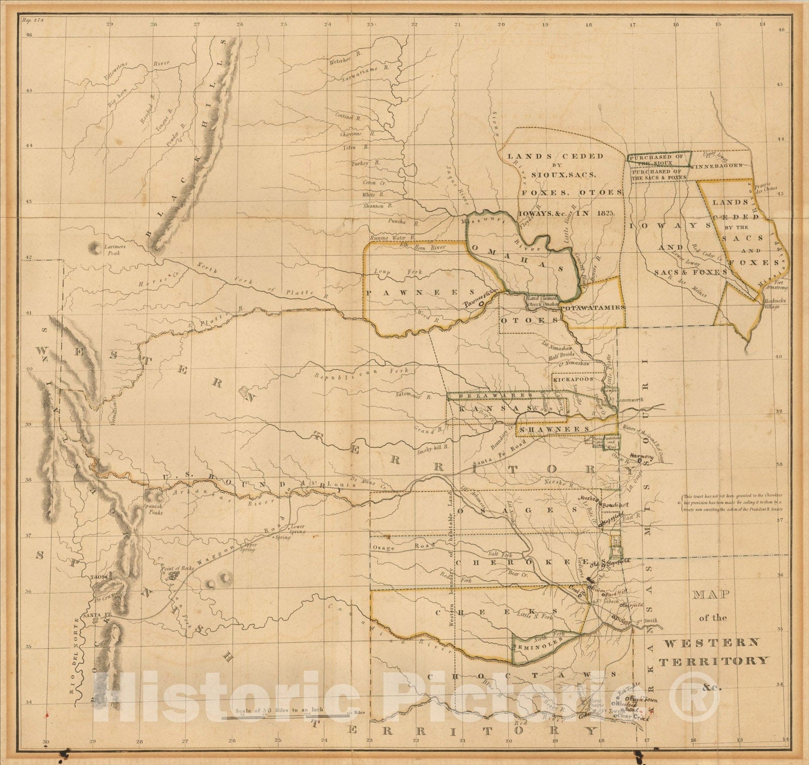 Historic Map : Map of the Western Territory andc. (with location of Christian Missions established in the 1820s added in manuscript), 1834, , Vintage Wall Art