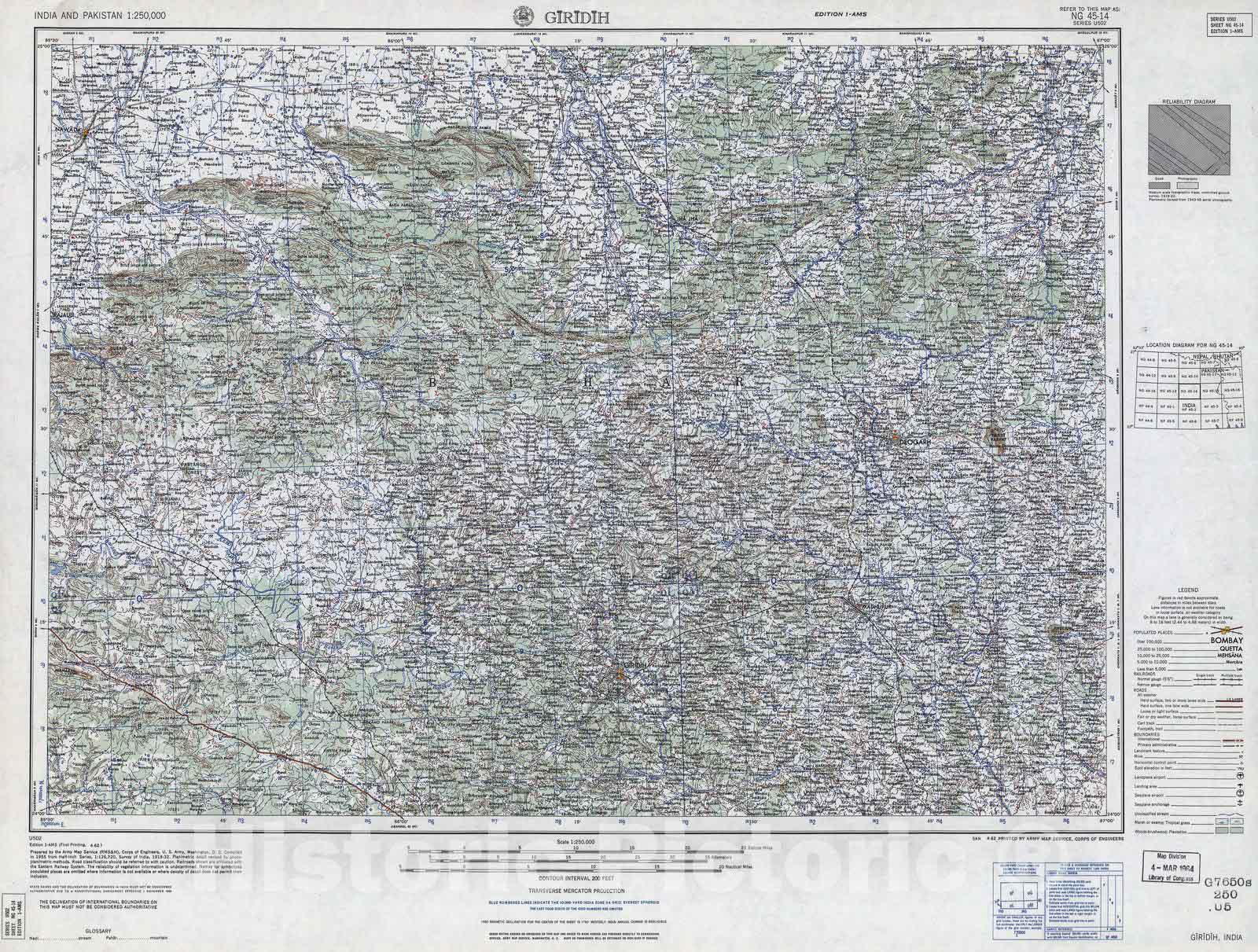 • Historic 1955 Map - India and Pakistan 1:250,000. - Giridih, India, 1962